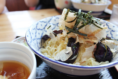 私が注文したのは「とろろなすつけ麺」。揚げたおなすって、なんて美味しいんだろ〜♪